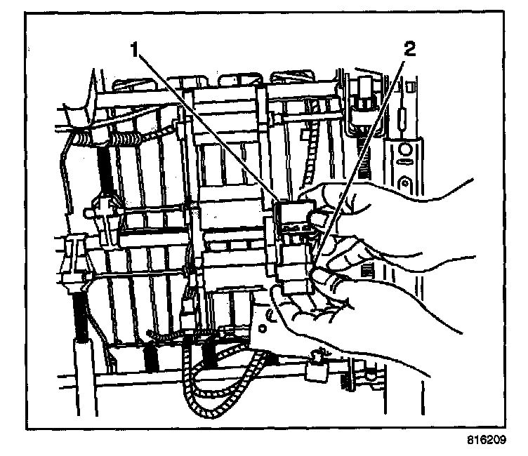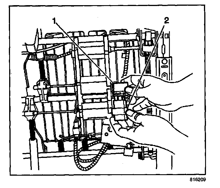 6. Disconnect the electrical harness connector (1) from the heater module (2).