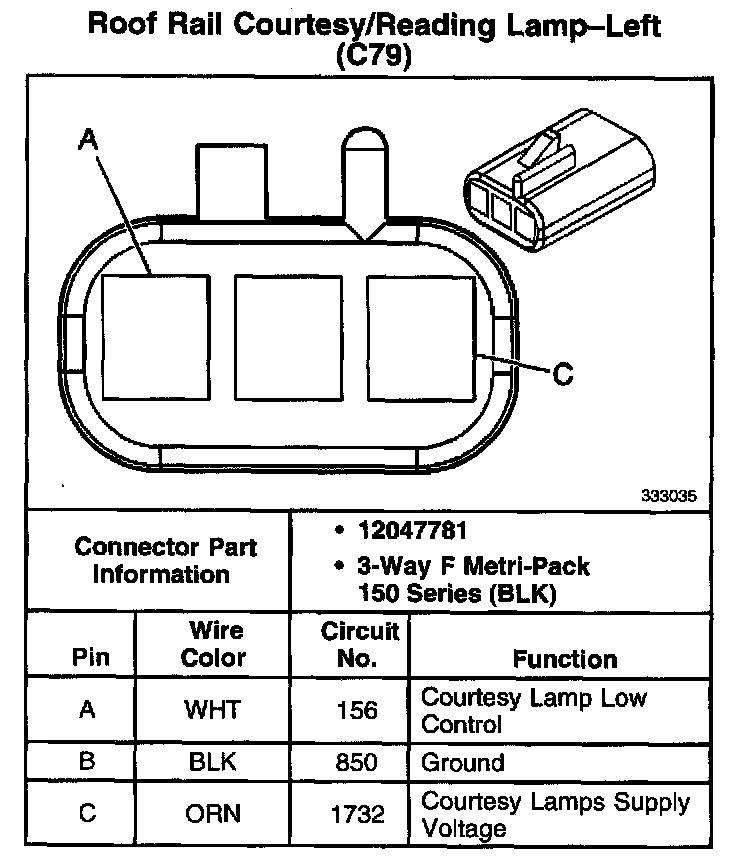 Roof Rail Courtesy/Reading Lamp - Left (With RPO Code C79):