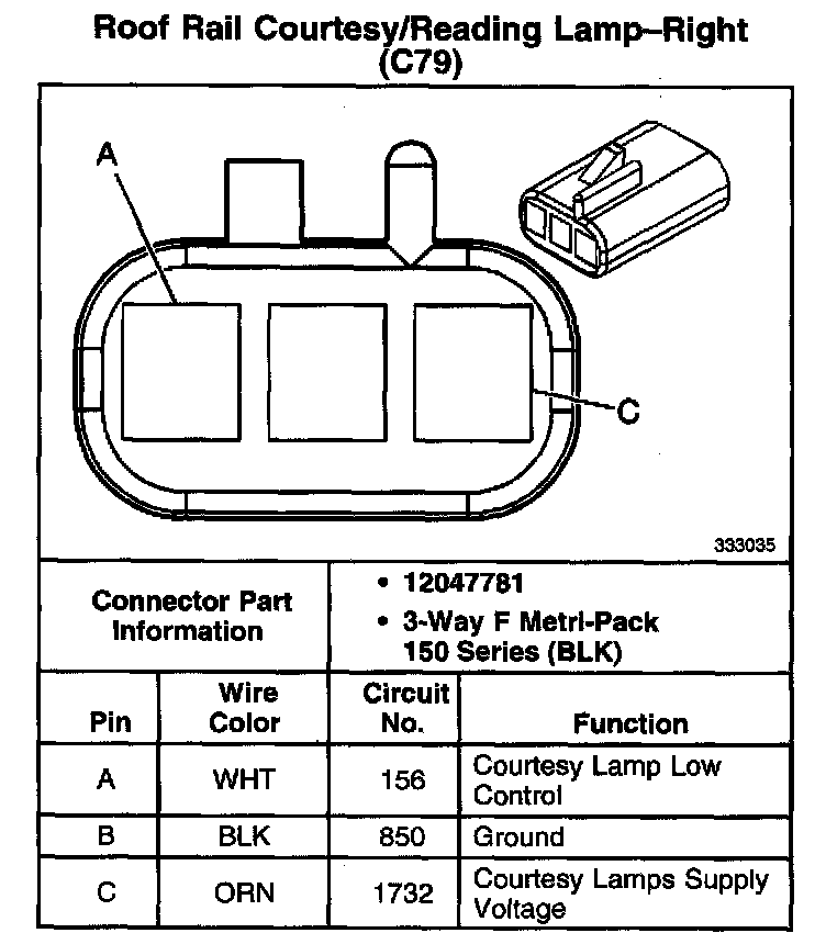 Roof Rail Courtesy/Reading Lamp - Right (With RPO Code C79):