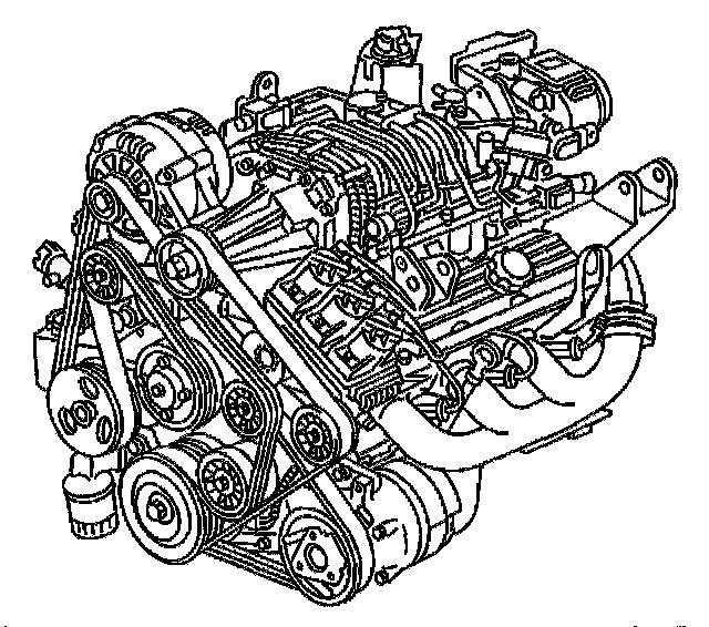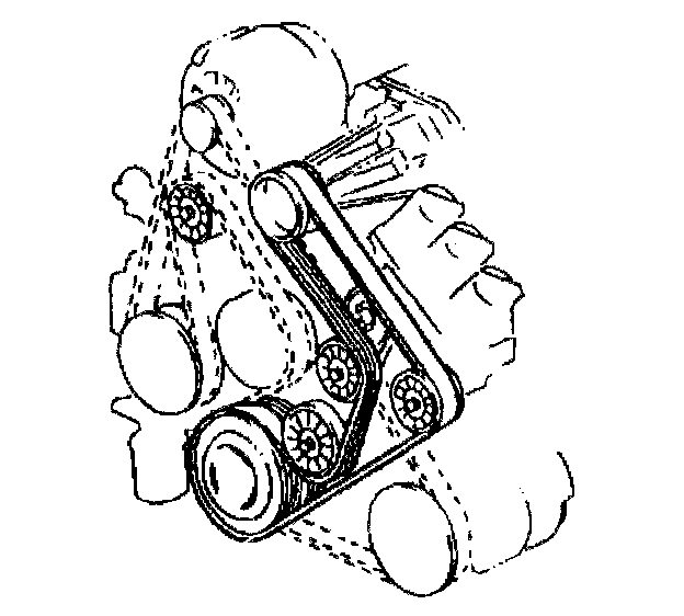 All driven accessories rigidly mount to the engine. Spring-loaded belt tensioners maintain the drive belt tension. Each drive belt has its own tensioner. A drive belt squeak, occurring when the engine starts or stops, is normal and has no effect on the durability of the drive belt. The drive belt tensioner can control the drive belt tension over a broad range of drive belt lengths, due to stretching. However, there are limits to the tensioner's compensation ability. Poor tension control and/or damage to the tensioner may occur after using the tensioner outside of its operating range. Replace the drive belt when this occurs.