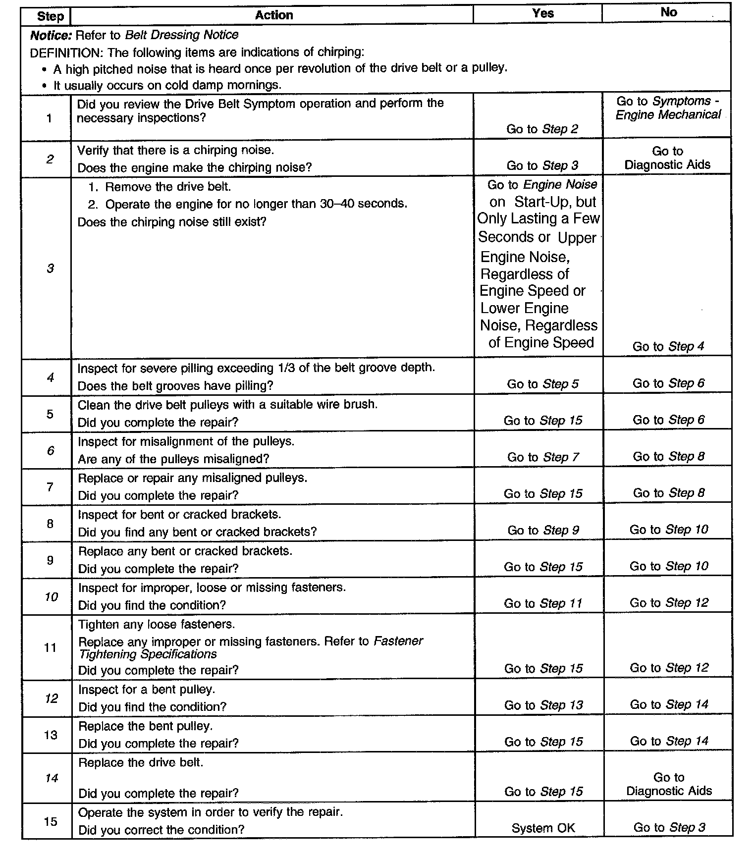 Drive Belt Chirping DiagnosisSteps 1-15: