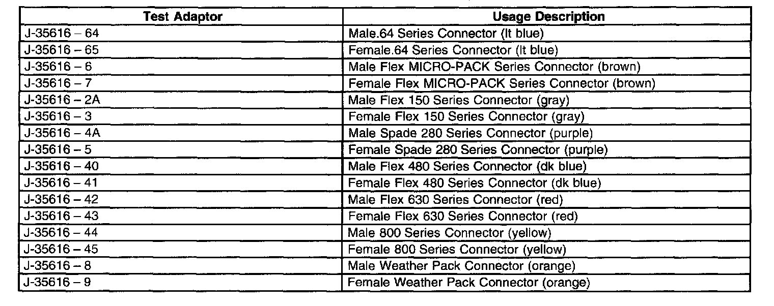 Refer to the table as a guide in selecting the correct test adapter for frontprobing connectors.
