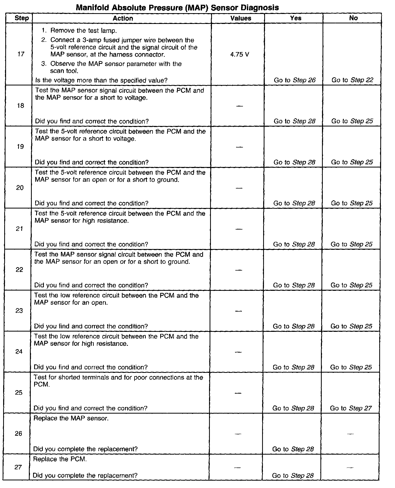 Manifold Absolute Pressure (MAP) Sensor Diagnosis