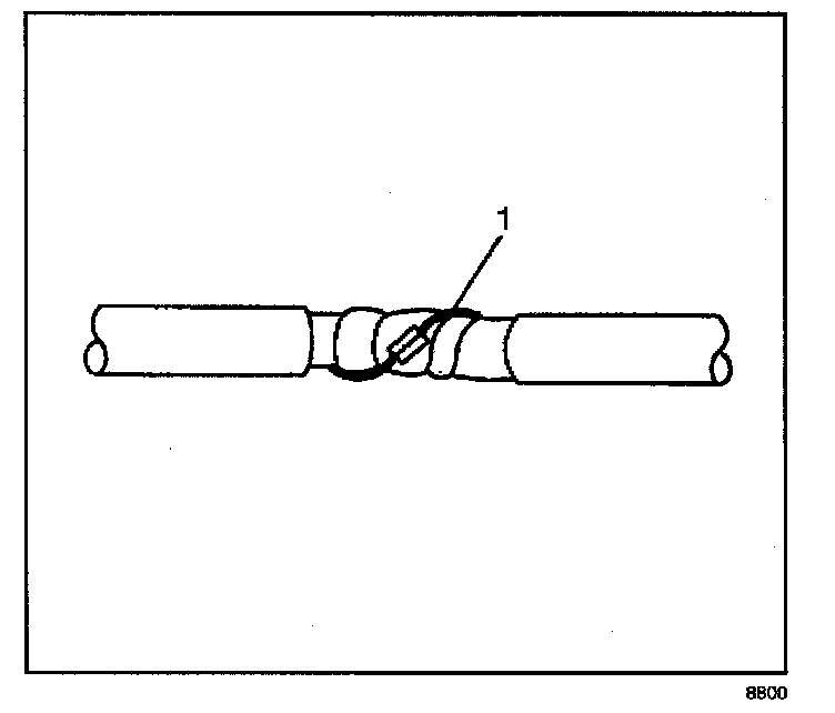 1. Remove the outer jacket (1). Use care not to cut into the drain wire of the mylar tape.