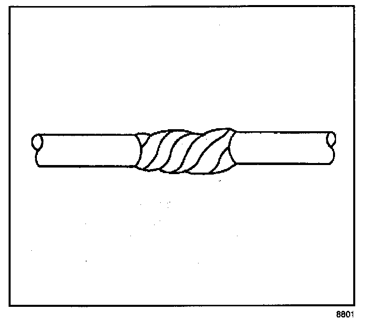 2. Unwrap the tape. Do not remove the tape. Use the tape in order to rewrap the twisted conductors after the splice is made.