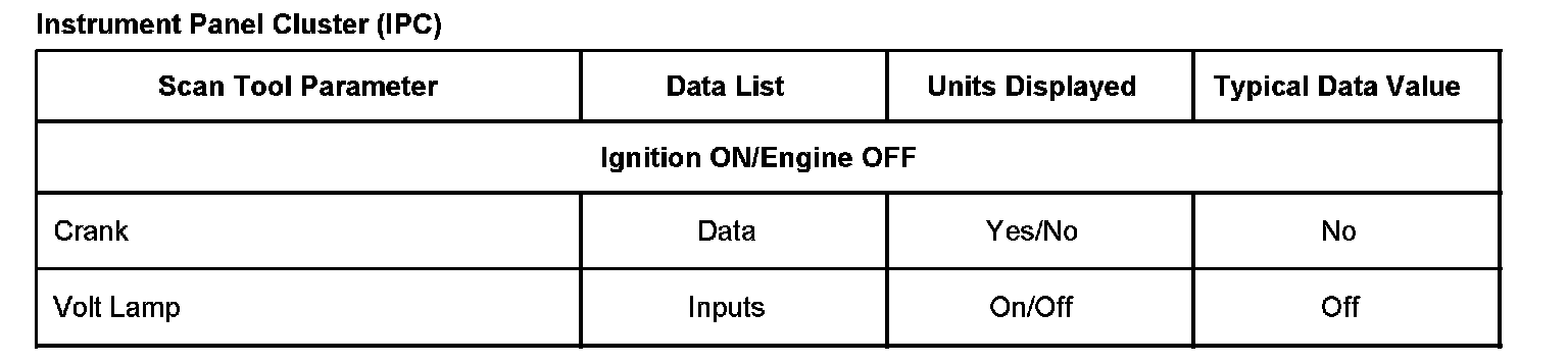 Scan Tool Data List - Instrument Panel Cluster (IPC):