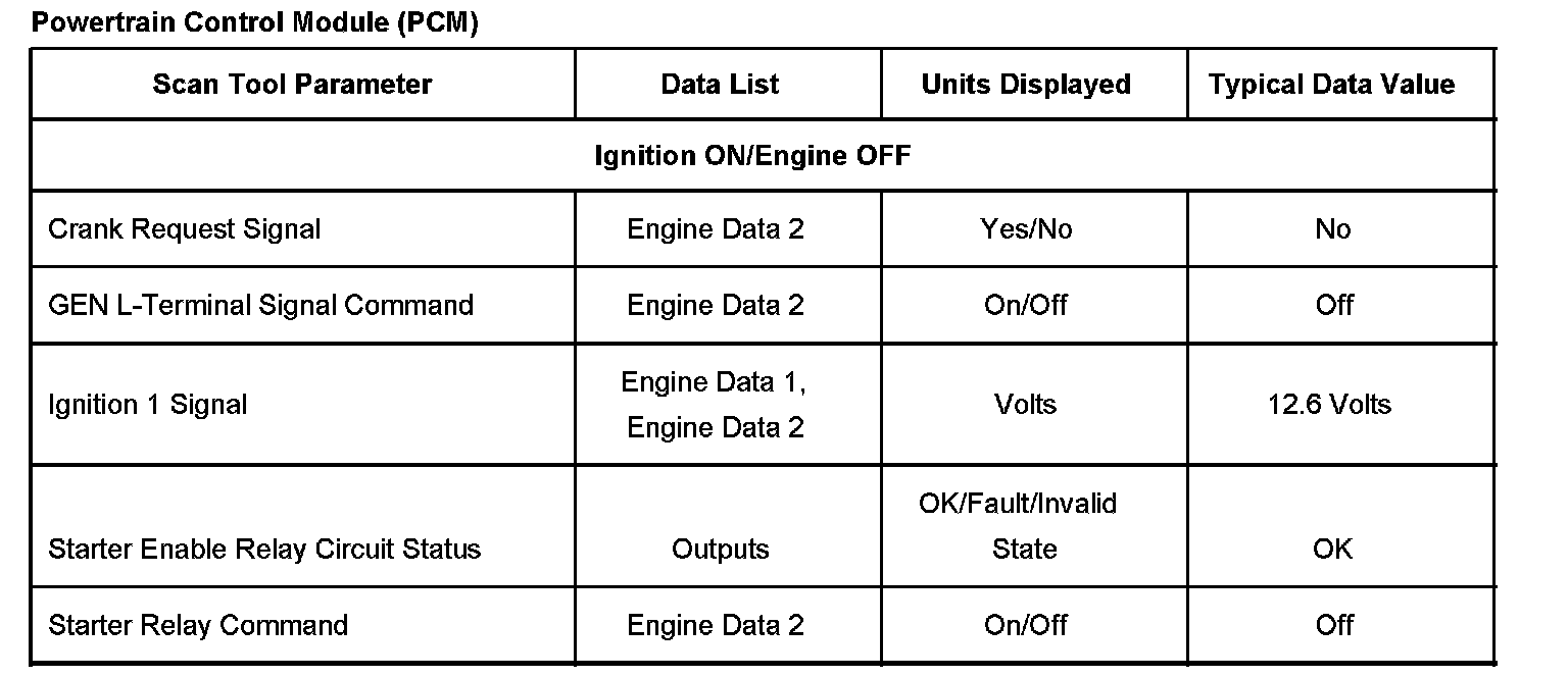 Scan Tool Data List - Powertrain Control Module(PCM):