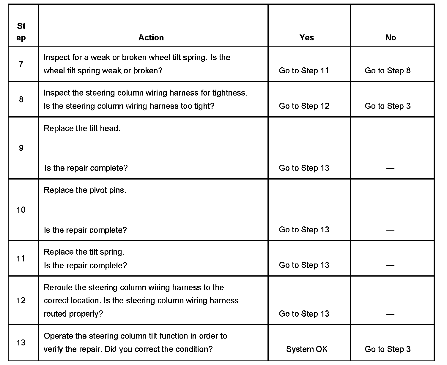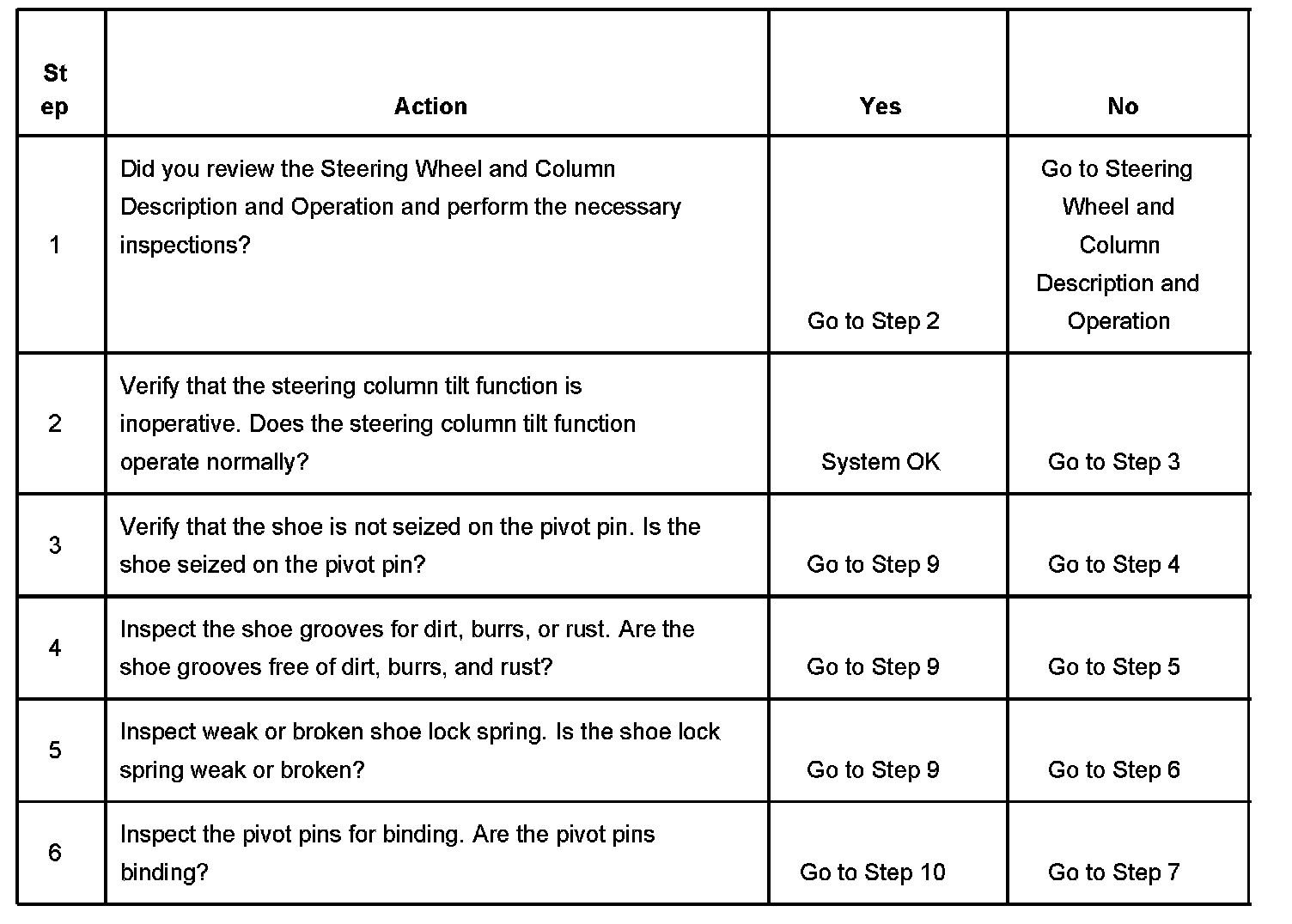 Steering Column Tilt Function Inoperative