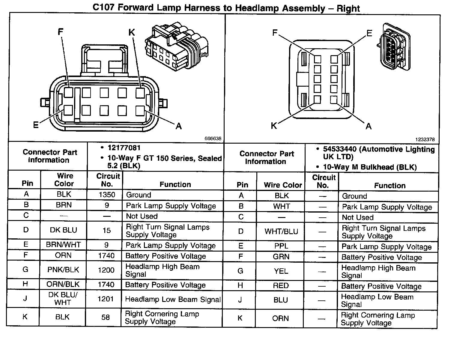 C107 Forward Lamp Harness To Headlamp Assembly - Right: