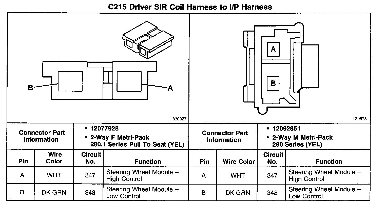 C215 Driver SIR Coil Harness To I/P Harness: