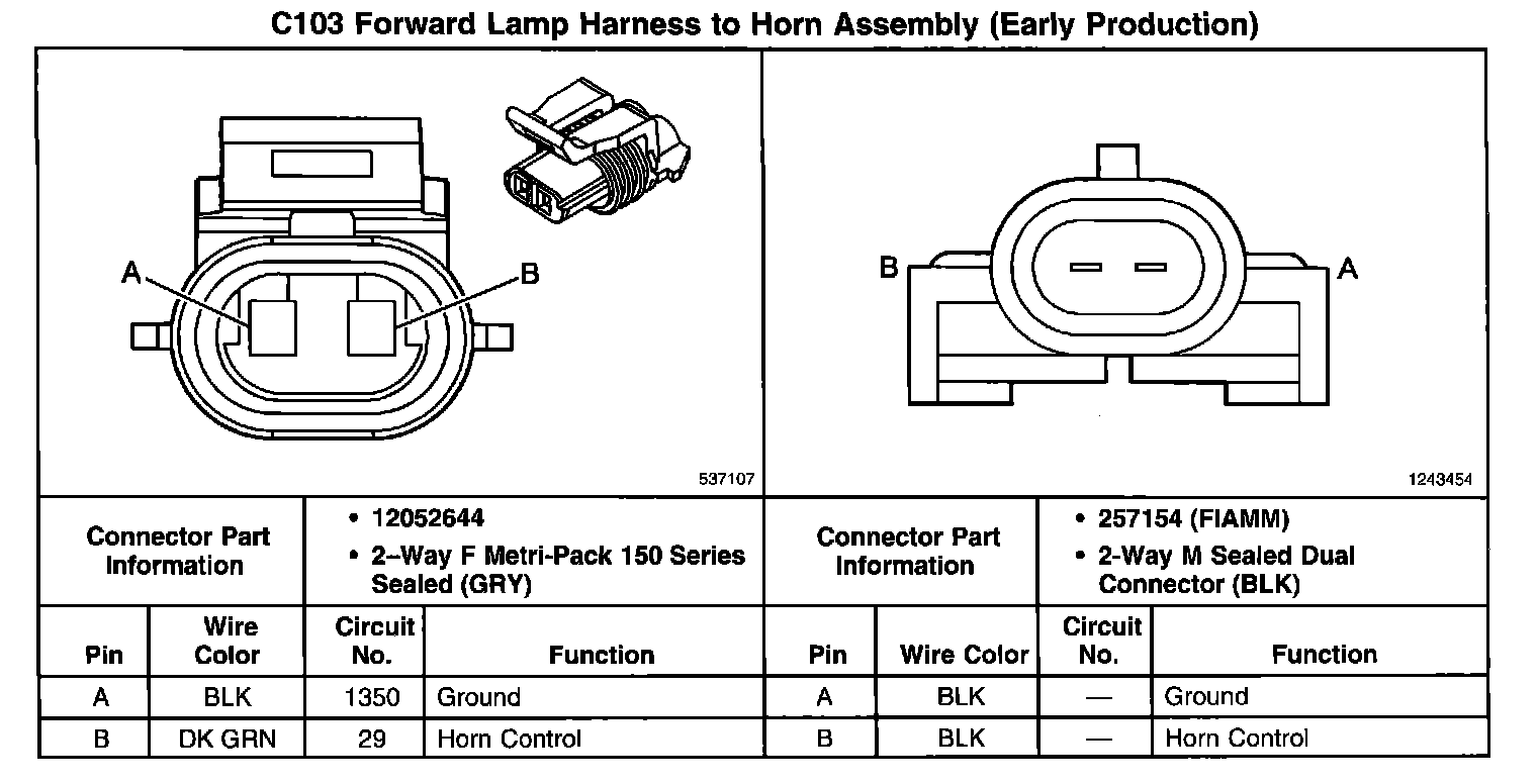 C103 Forward Lamp Harness To Horn Assembly (Late Production):