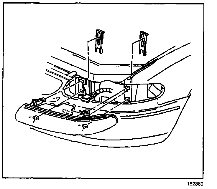 6. Position the headlamp mounting tabs to the slots in the upper fascia support and the fender reinforcement.