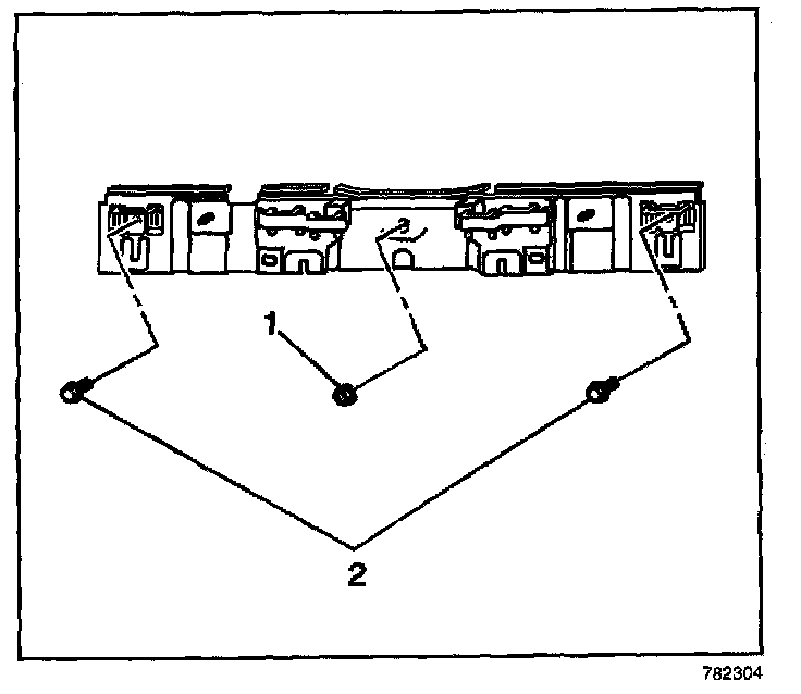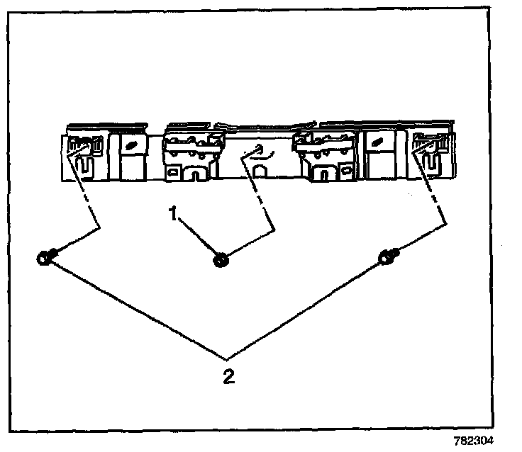 2. Apply a thread sealant, GM P/N USA 12345382 Canada 10953489, Loctite 242, Permatex 24200 to the threads of the bolts (2) and also the stud for the bracket nut (1).