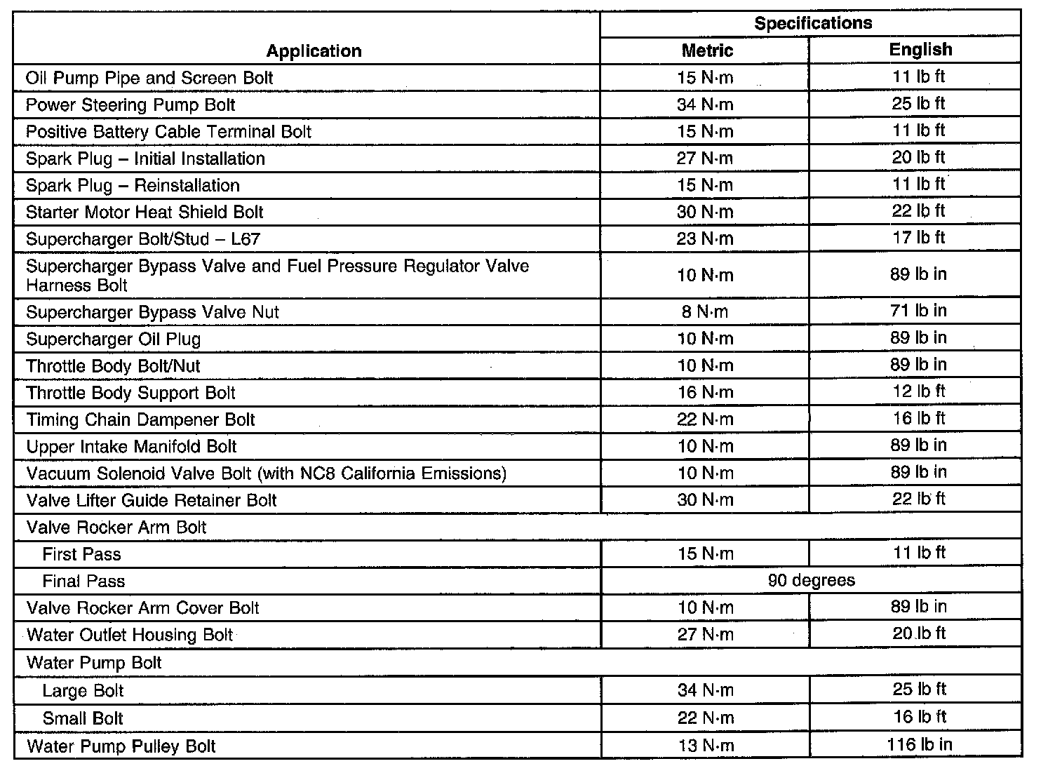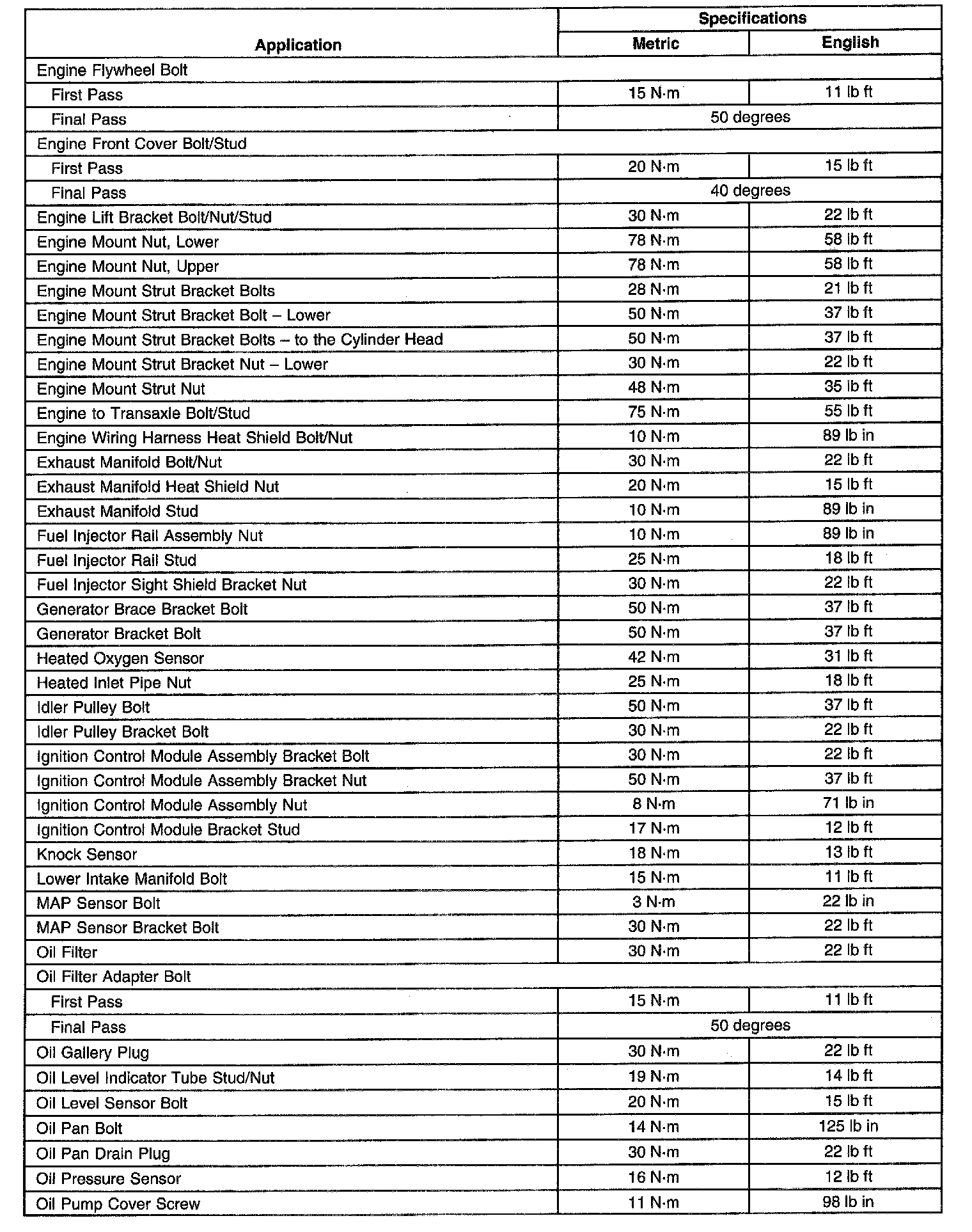 Fastener Tightening Specifications