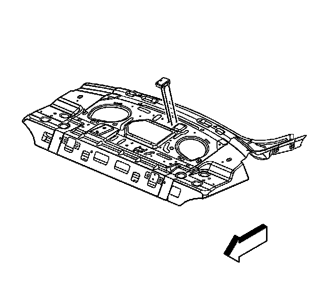 2. Install the receiver by positioning the inboard retainer to the slot in the rear window shelf trim panel. Press the outboard retainers into the rear window shelf trim panel openings.
