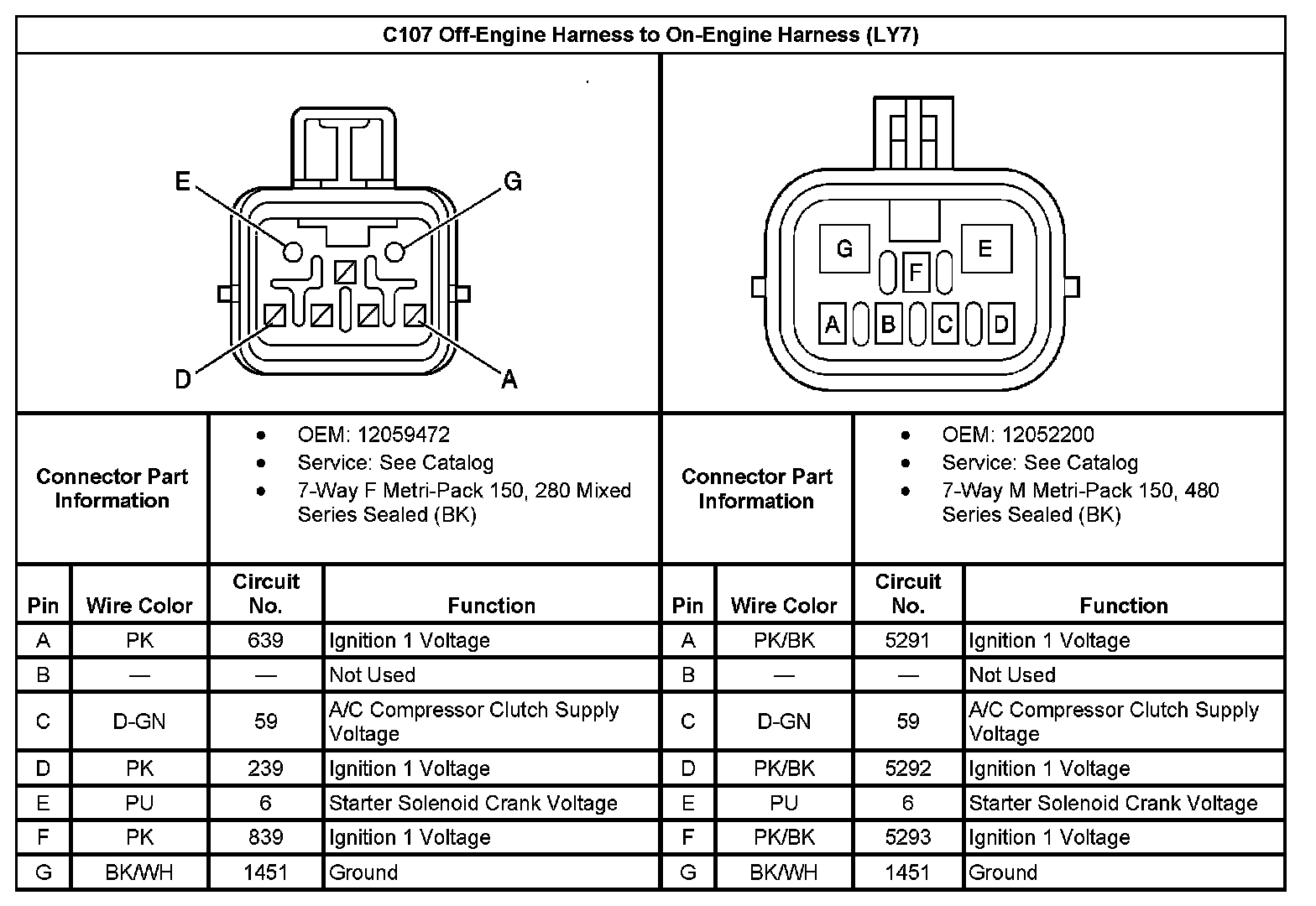 C107 Off-Engine Harness To On-Engine Harness: