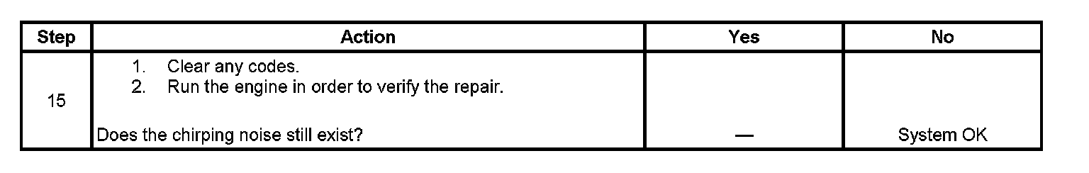 2. The chirping noise may not be engine related. This step is to verify that the engine is making the noise. If the engine is not making the noise do not proceed any further in this table.