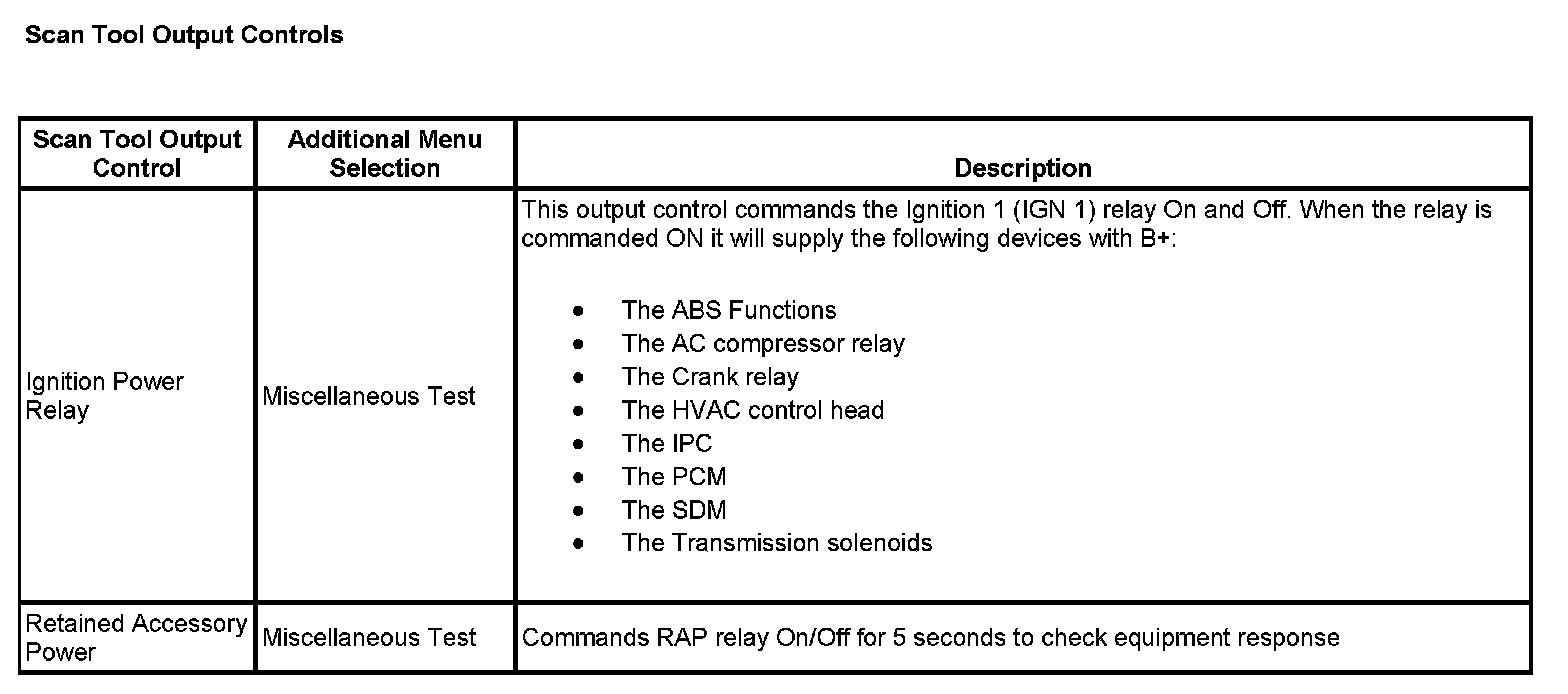 Scan Tool Output Controls: