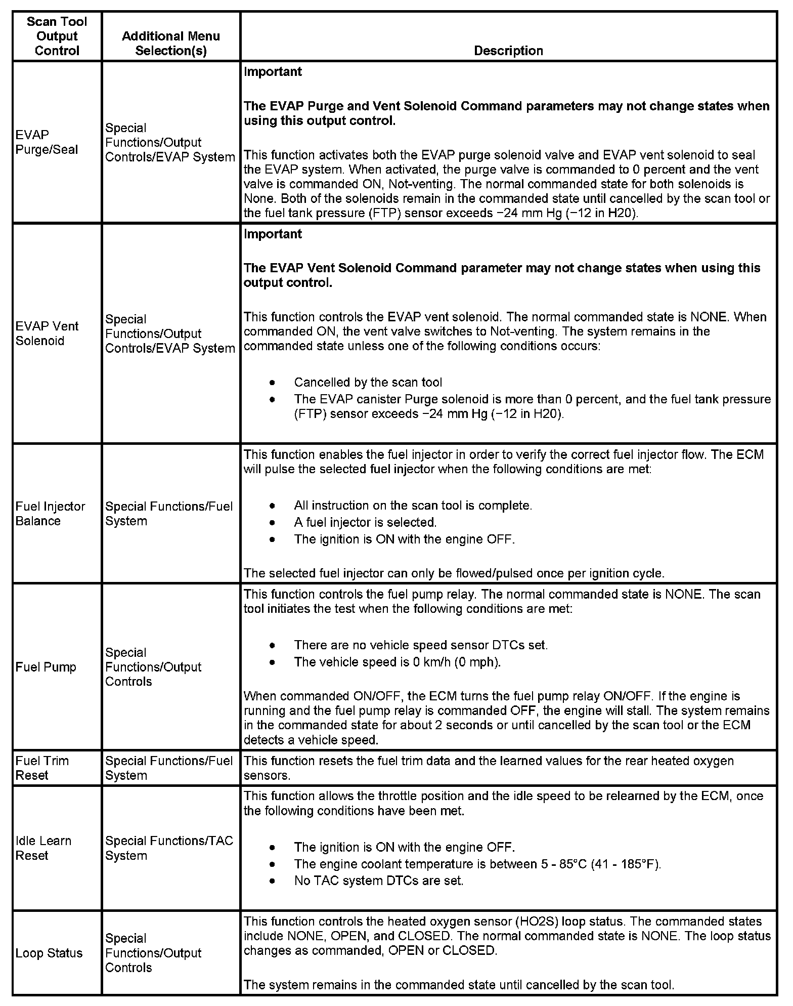 Scan Tool Output Controls