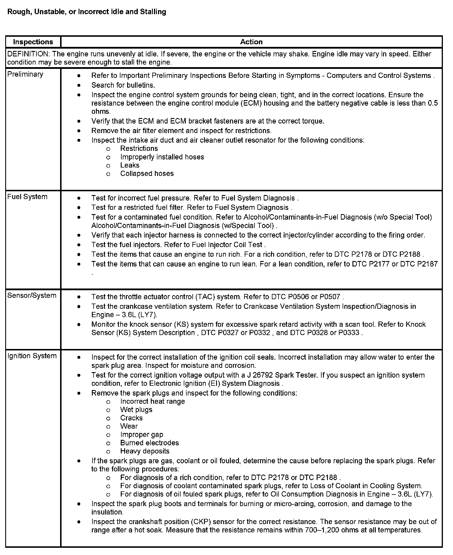 Rough, Unstable, or Incorrect Idle and Stalling