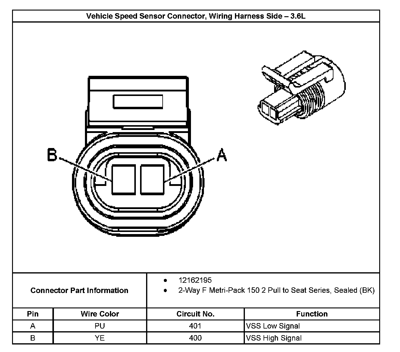Vehicle Speed Sensor Connector End View, Wiring Harness Side - 3.6L:
