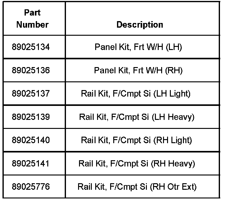 These kits contain a panel or rail, an instruction sheet and rivets. The rivets and instruction sheet are common among the kits, but the panel or rail is specific to each kit.