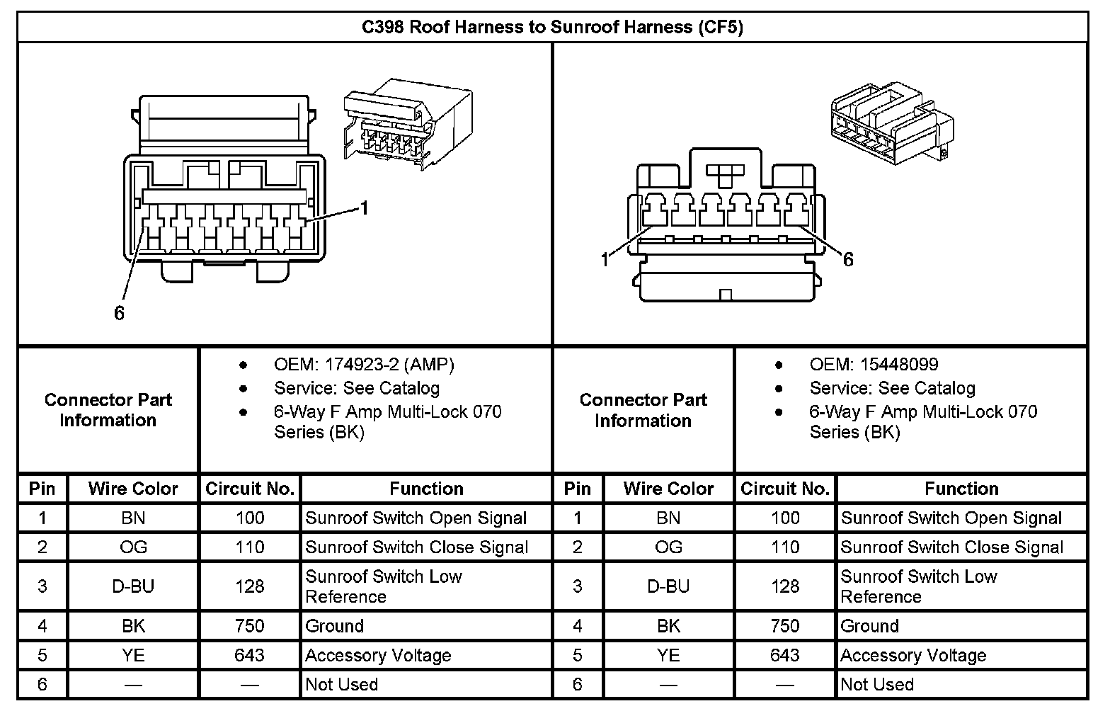 C398 Roof Harness To Sunroof Harness (With RPO Code CF5):