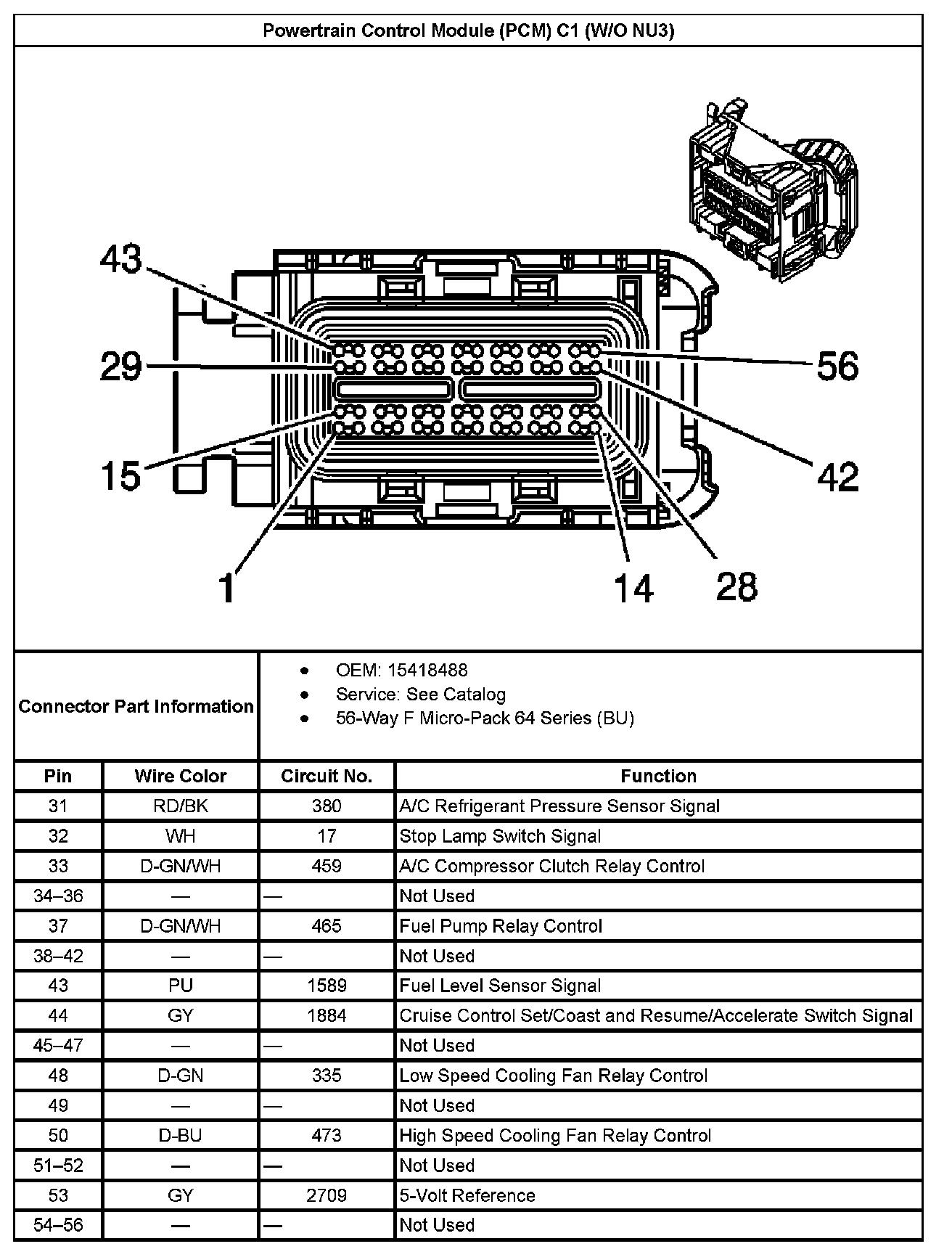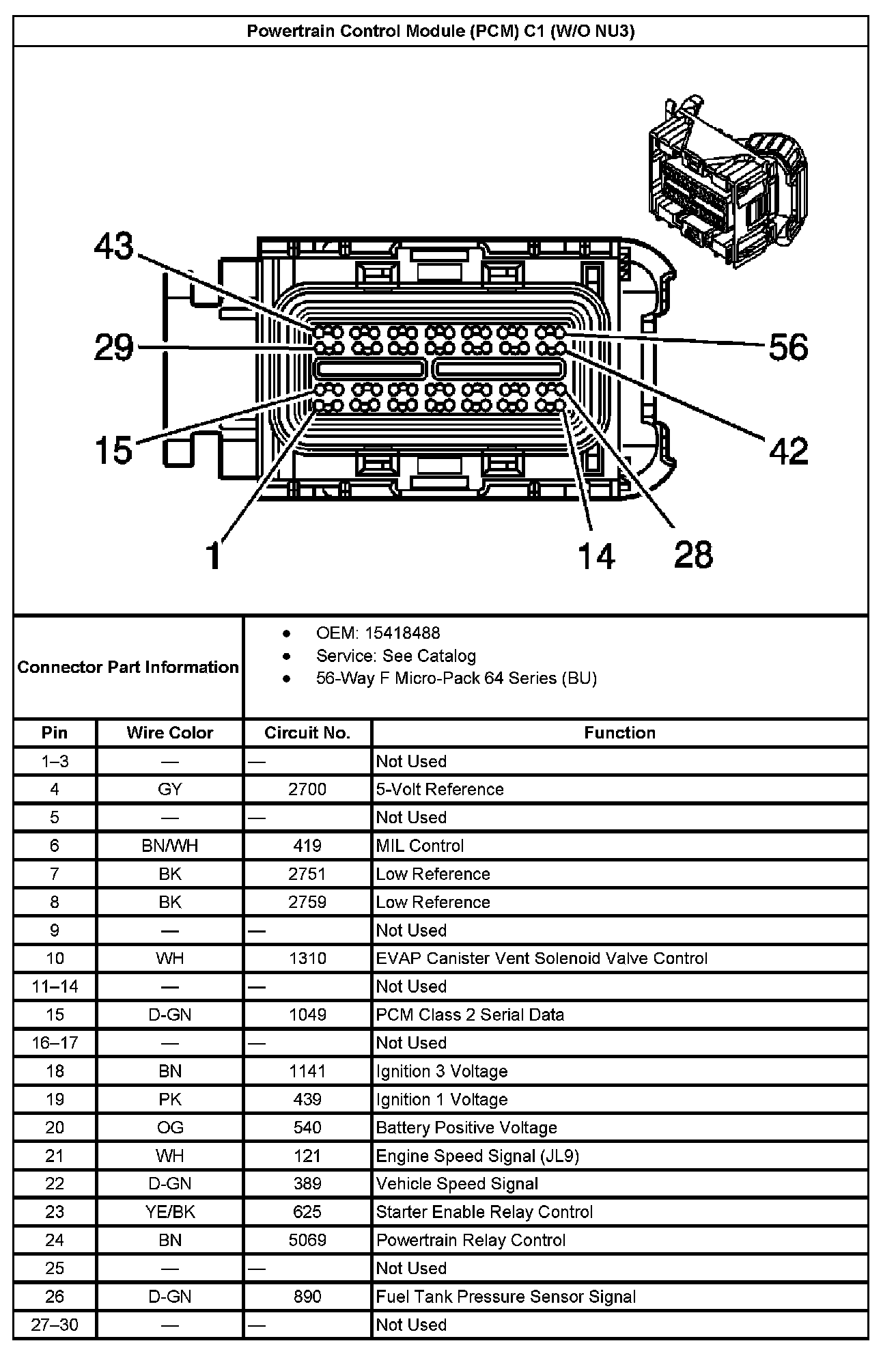 Powertrain Control Module (PCM) C1 (Without RPO Code NU3) Part 1: