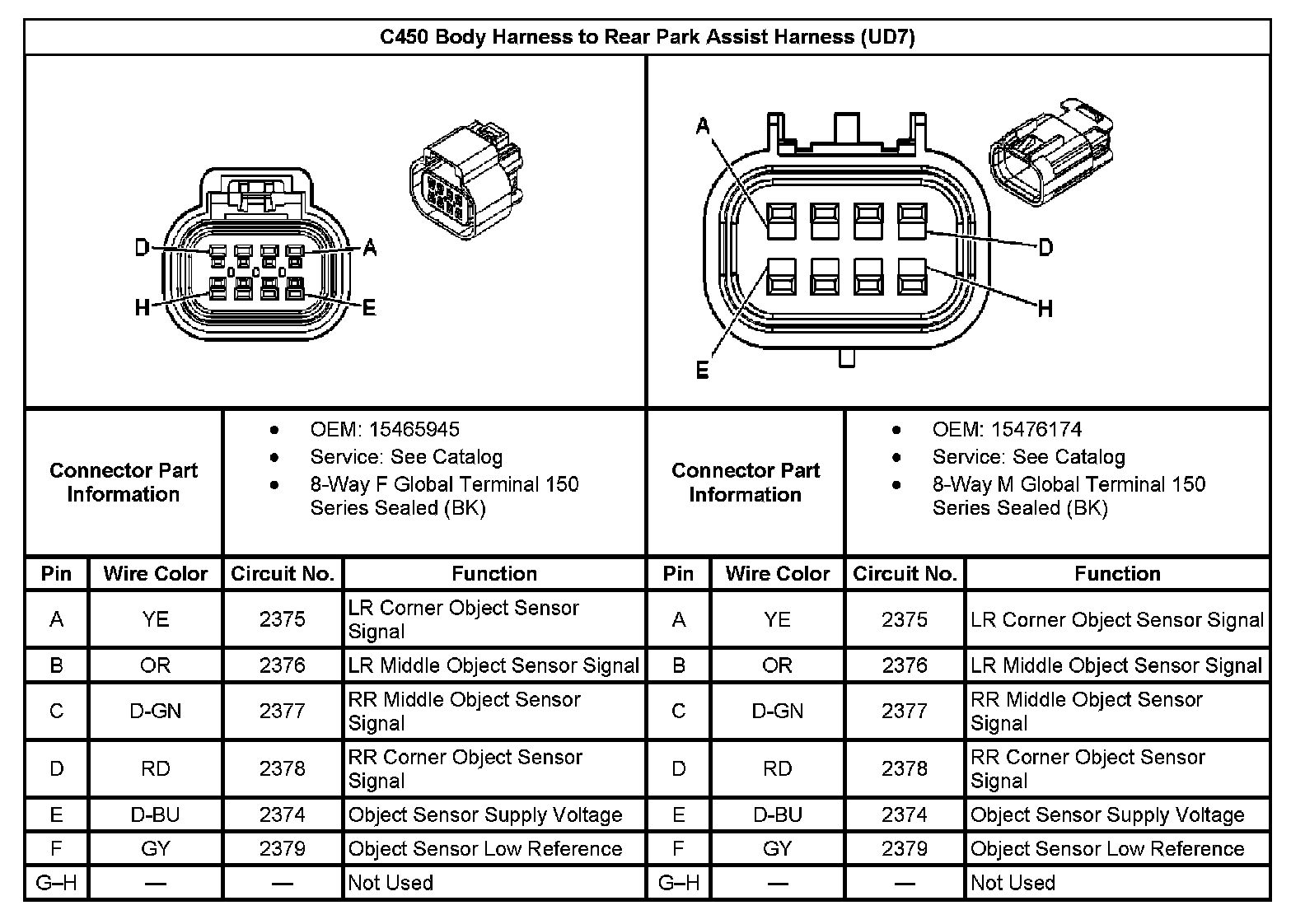 C450 Body Harness To Rear Park Assist Harness (With RPO Code UD7):