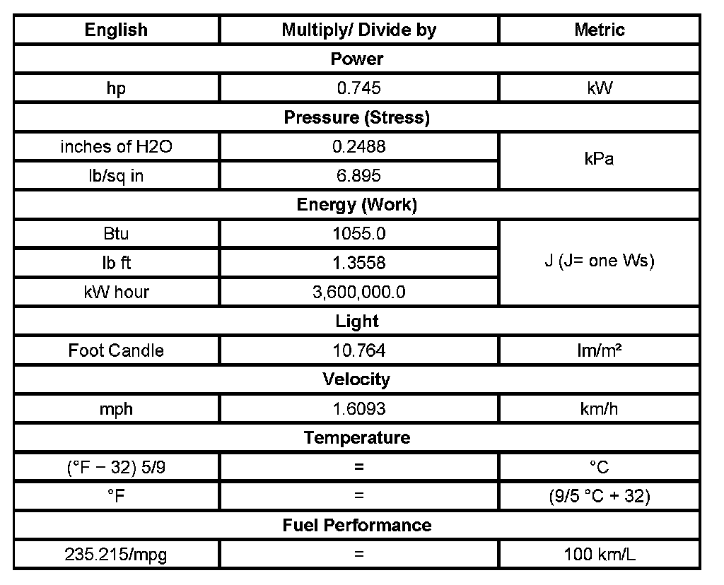 Conversion - English/Metric