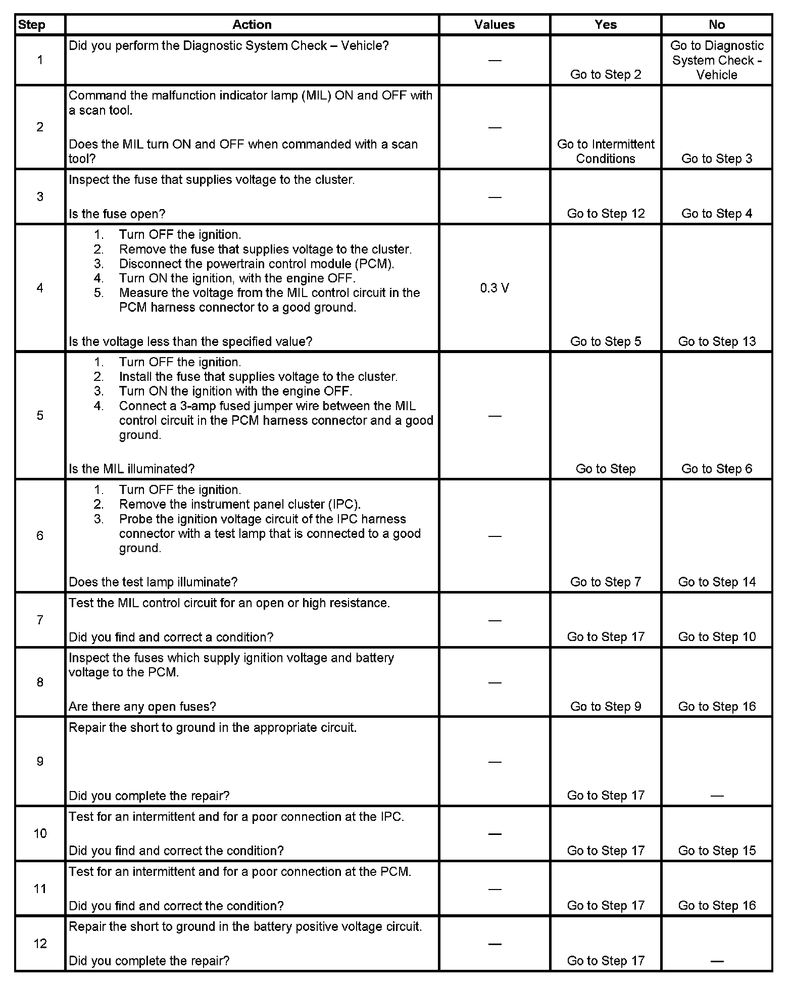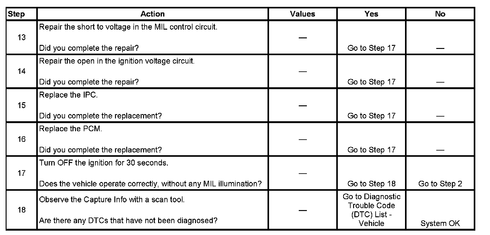 4. This step tests for a short to voltage on the MIL control circuit. With the fuse removed there should be no voltage on the MIL control circuit.
