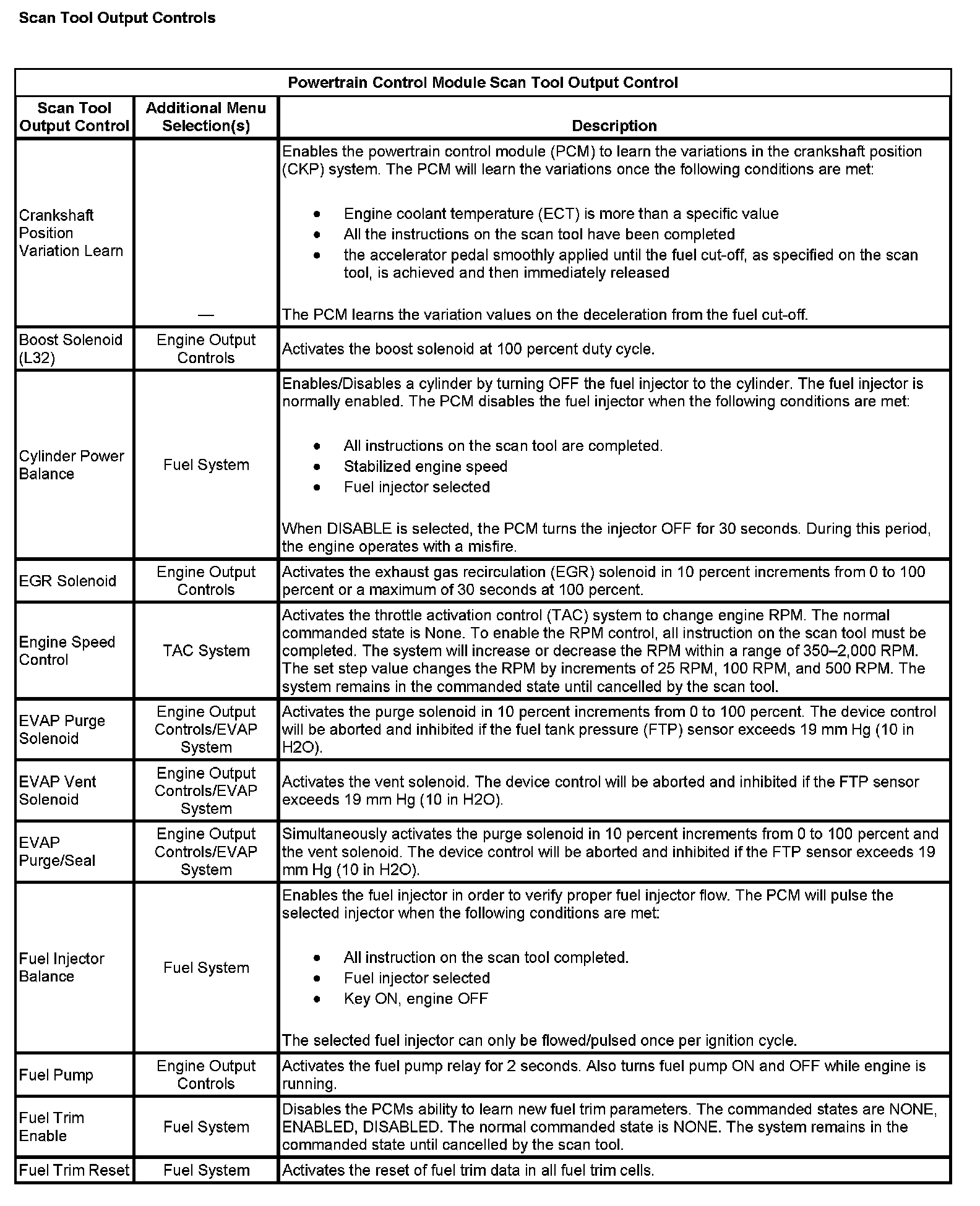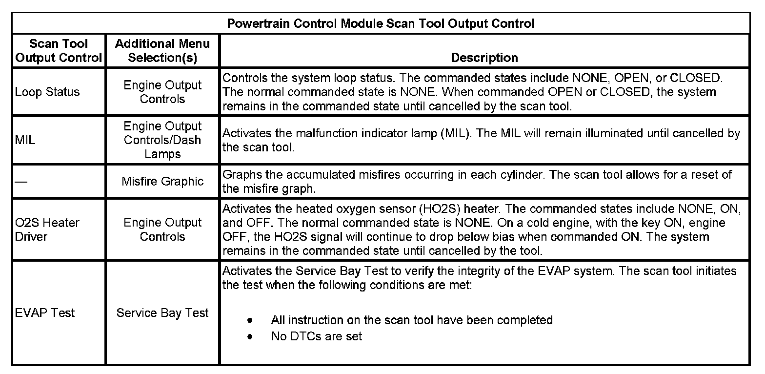 Scan Tool Output Controls