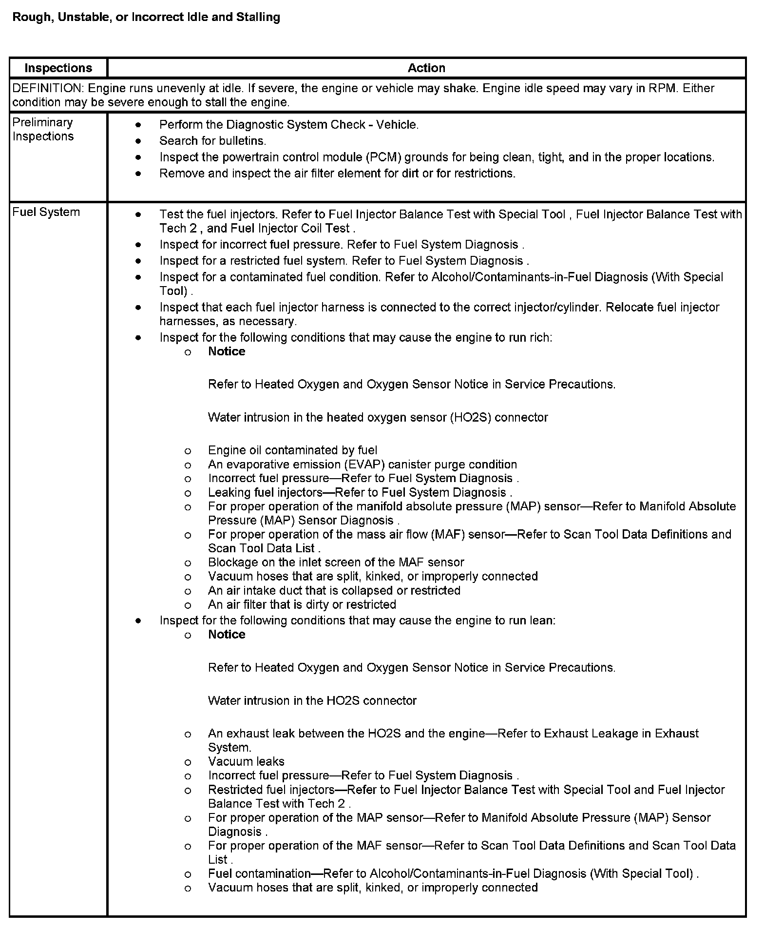 Rough, Unstable, or Incorrect Idle and Stalling