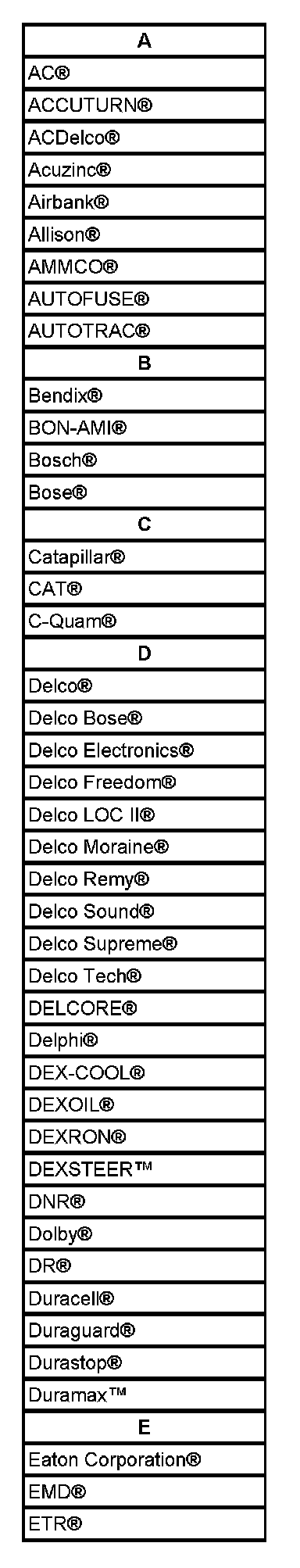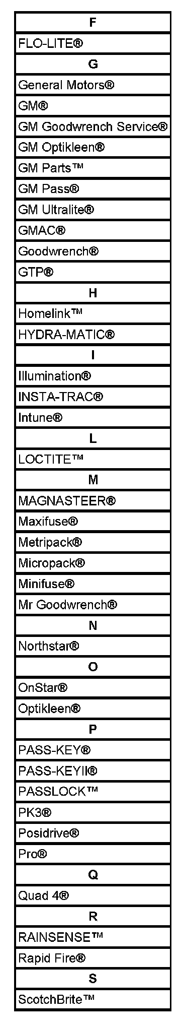 Listed are Registered Trademarks ((R)) or Non-Registered Trademarks ((TM)) which may appear in this service data.