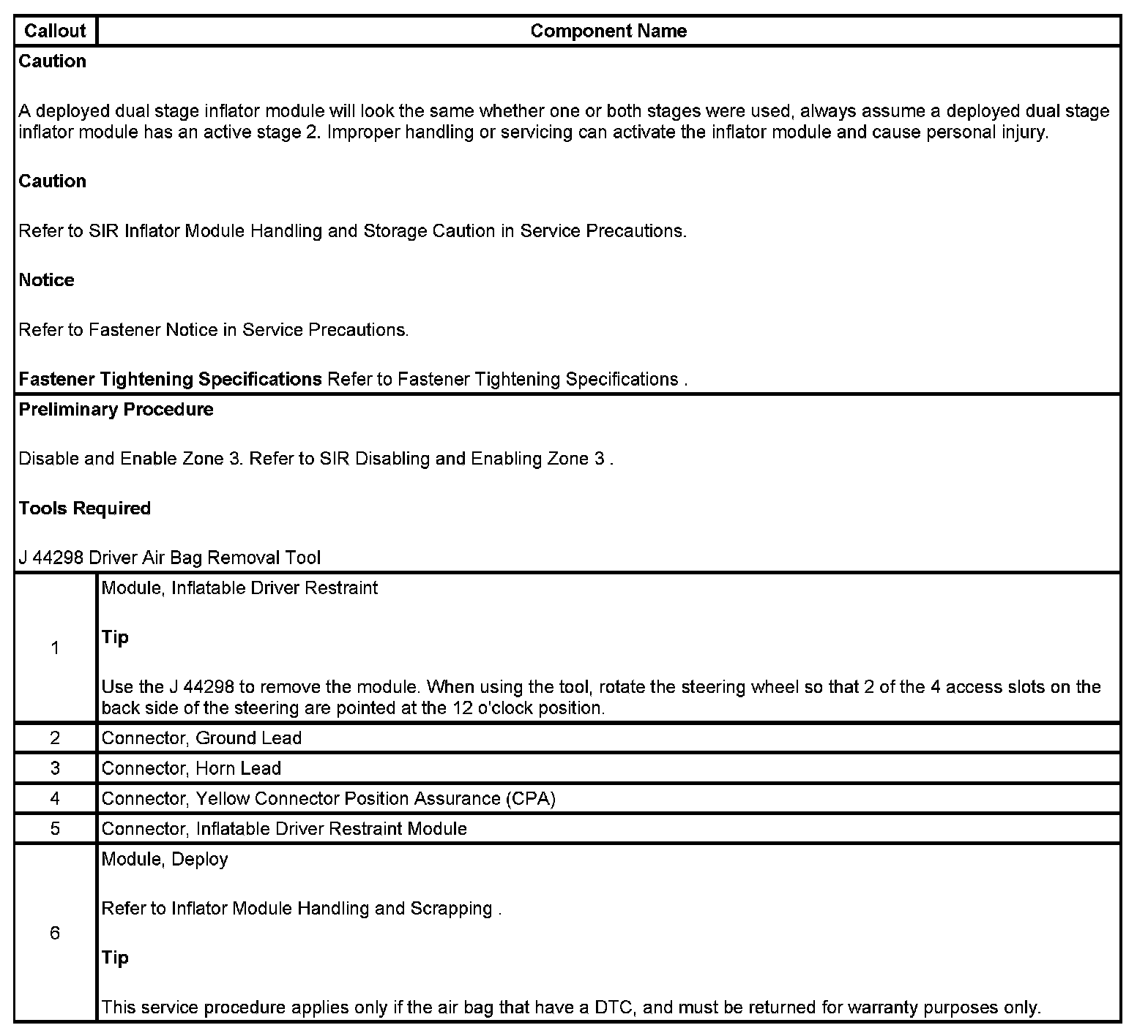 INFLATABLE RESTRAINT STEERING WHEEL MODULE REPLACEMENT