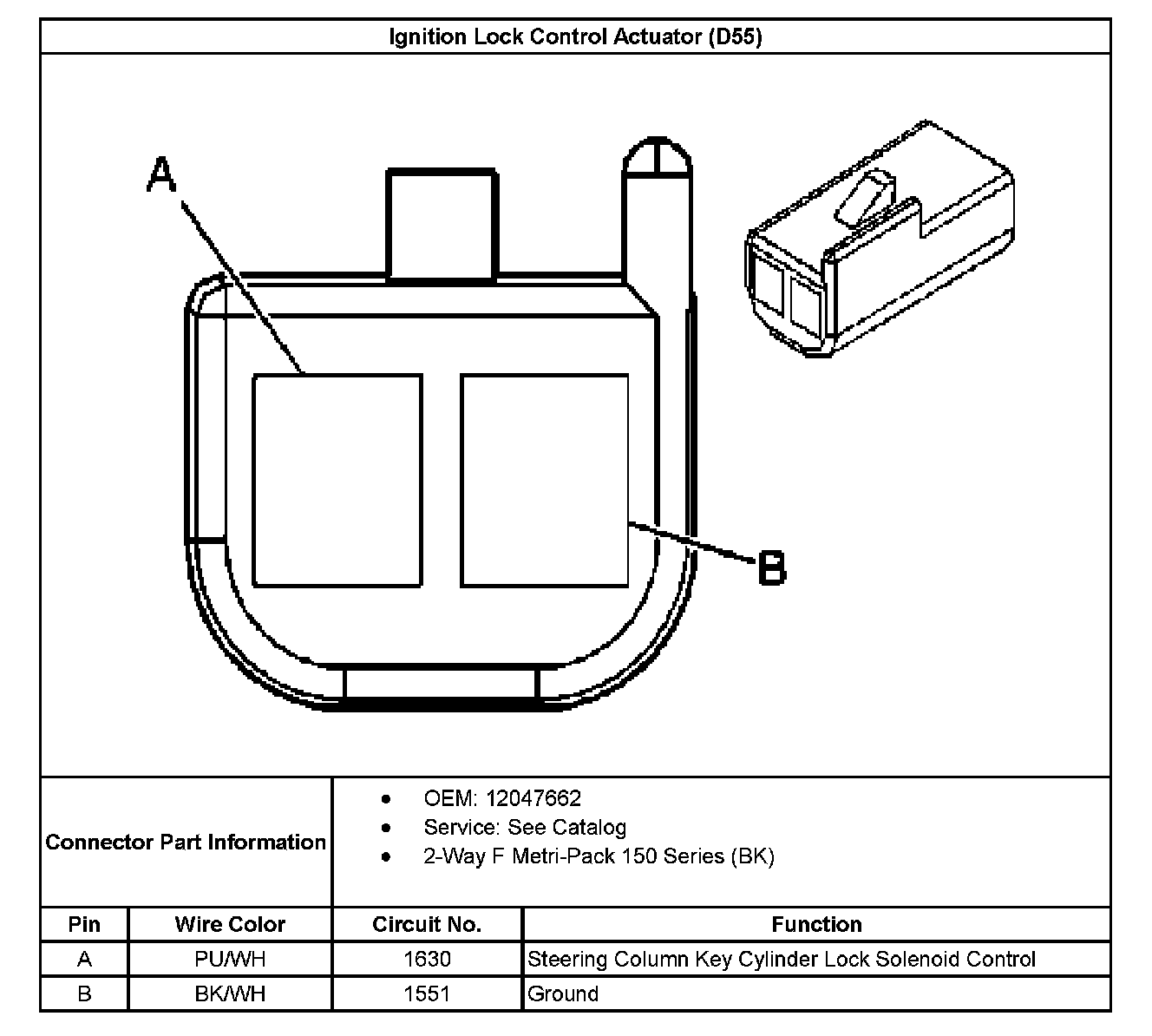 Ignition Lock Control Actuator (D55) Connector End Views: