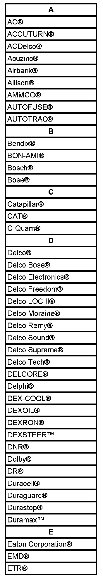 Listed are Registered Trademarks ((R)) or Non-Registered Trademarks ((TM)) which may appear in this service data.