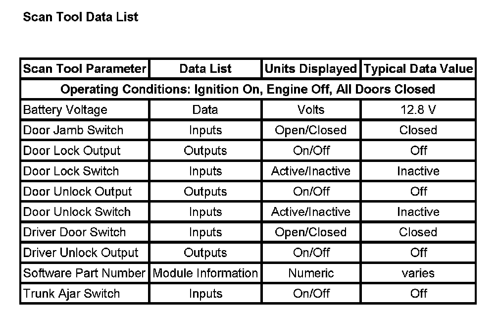 Scan Tool Data List: