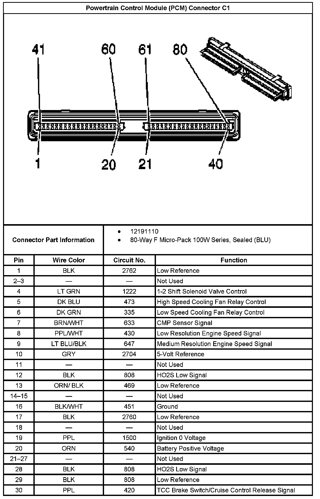 Powertrain Control Module (PCM) Connector C1 Part 1: