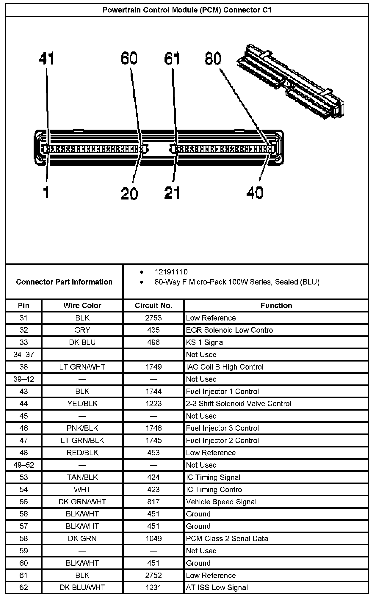 Powertrain Control Module (PCM) Connector C1 Part 3: