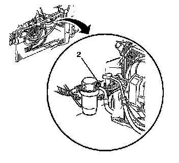 7. Install the A/C compressor hose nut (2) to the accumulator.