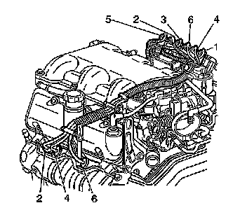 5. Install the spark plug wires 2, 4, and 6 to the engine left side spark plugs.
