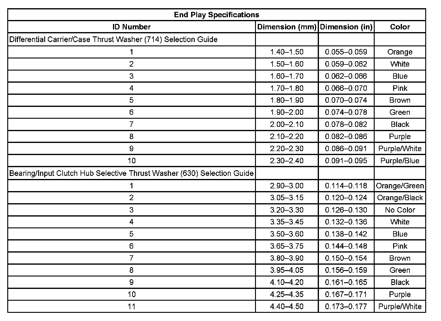 End Play Specifications: