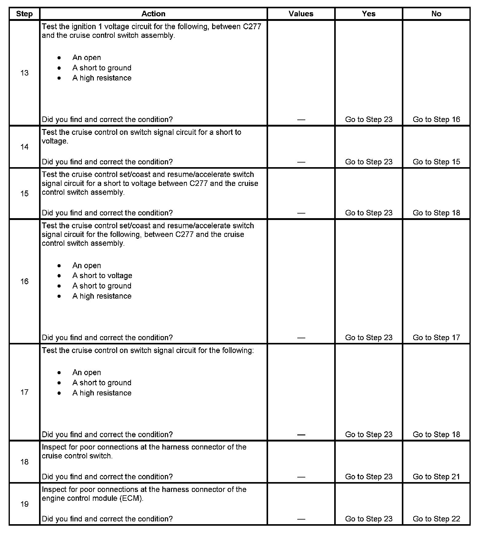 - Ensure that the following cruise control switches are not stuck in the engaged position:
