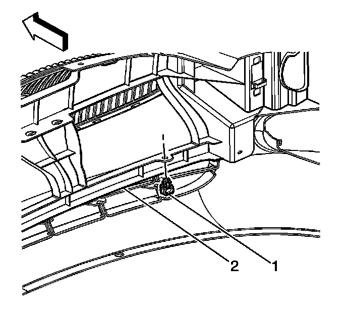 2. Install the ambient temperature sensor (1) to the front fascia (2).