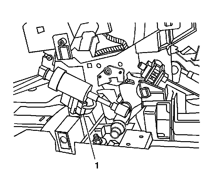 3. Disconnect the automatic transaxle shift lock actuator electrical connector (1).