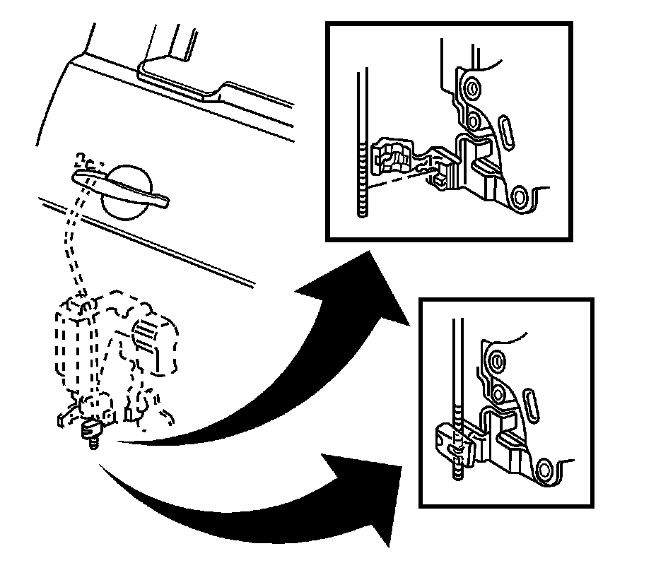 When servicing a vehicle with adjustable outside handle lock rods, remove all free play between the outside handle and the lock. Also, do not operate the outside handle before these connections are made.