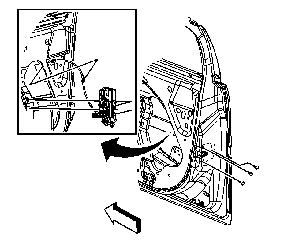 6. Remove the door lock and cable through the access hole in the door inner panel.
