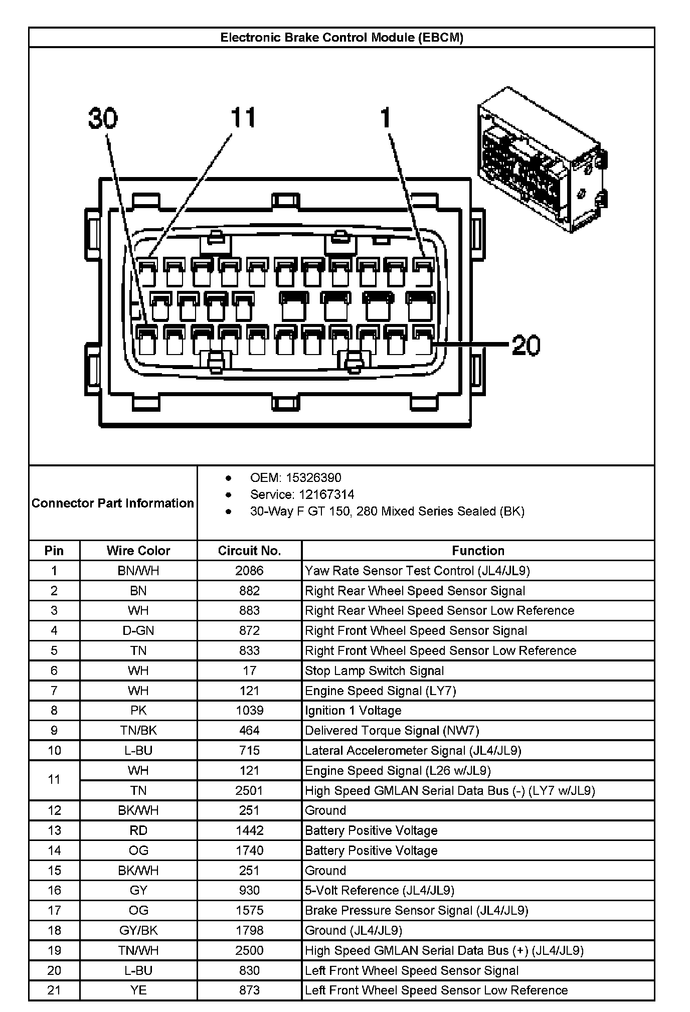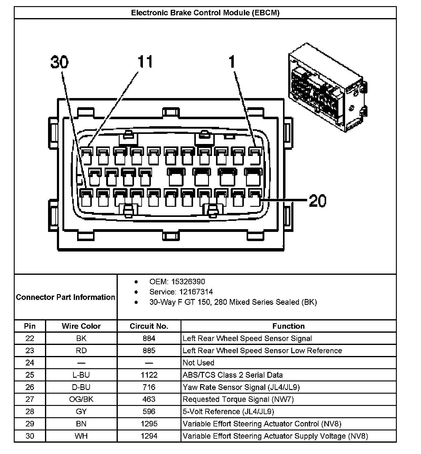 Electronic Brake Control Module (EBCM) Connector End Views: