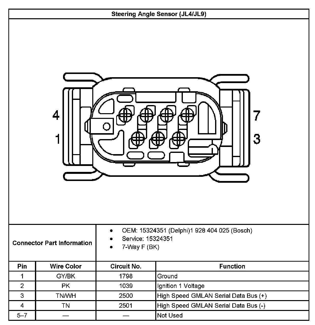 Steering Angle Sensor (JL4/JL9) Connector End View: